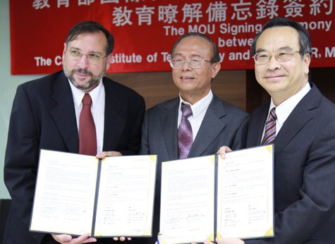 Also in attendance at the signing ceremony were Tsong-Ming Lin, political deputy minister, Ministry of Education; Nai-Chang Yeh, professor of physics, Caltech; and Sheila Paskman, public affairs section chief and spokesperson for the American Institute in Taiwan.