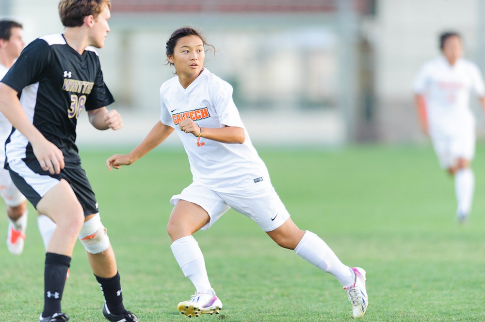 Undergraduate Monica Li plays in a game against Whittier College on October 14, 2015. At Caltech, female undergraduates have traditionally had the opportunity to play on the men's team if they wanted to compete in the Division III sport. With the addition of a new women's soccer team in the fall of 2017, however, these students will now have the opportunity to compete against other women's teams.