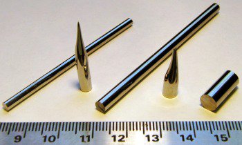 Glassy palladium rods, with diameters ranging from 3 to 6 mm.