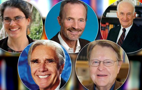 Top, from left to right: Andrea M. Ghez, Mark H. Kryder, Simon Ramo. Bottom, from left to right: Charles E. Wheatley III, Clyde A. Hutchison III.