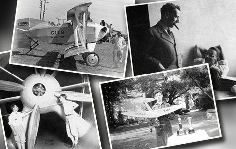 The exhibit, a collaboration of the Caltech Library, the Caltech Archives, GALCIT, and the Division of Engineering and Applied Science, features four cases full of documents, photographs, and images that highlight pioneers in the field, the history of Caltech's legendary wind tunnel, industry partnerships, and the important contributions that GALCIT graduates made to aviation.