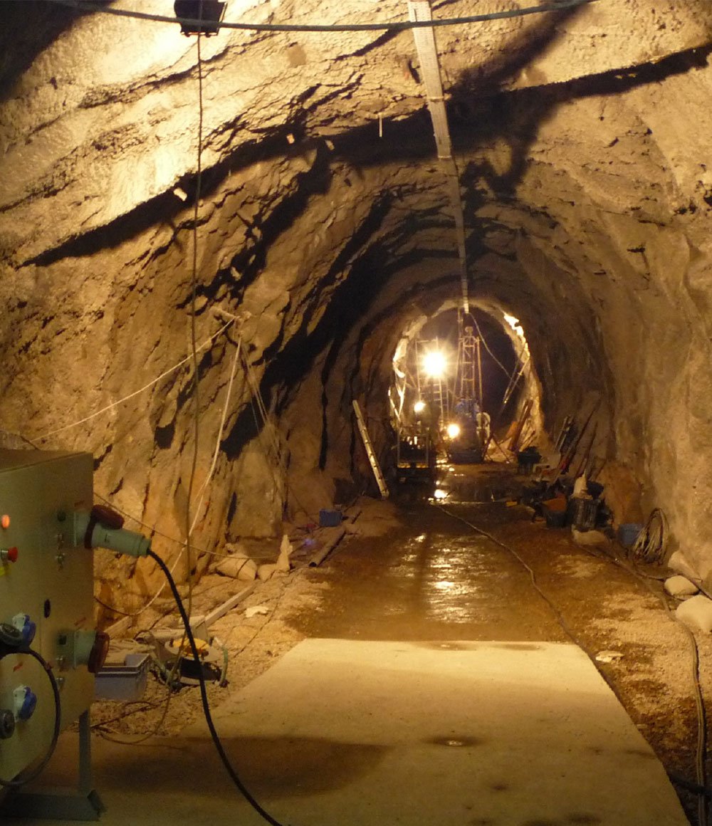 View of the Laboratoire Souterrain à Bas Bruit (LSBB) in Southern France, an underground facility at 500m depth where water was injected into a fault at depth of about 925 feet. The fault was drilled and equipped with fiber-optics probe to monitor deformation and fluid pressure during the experiment.