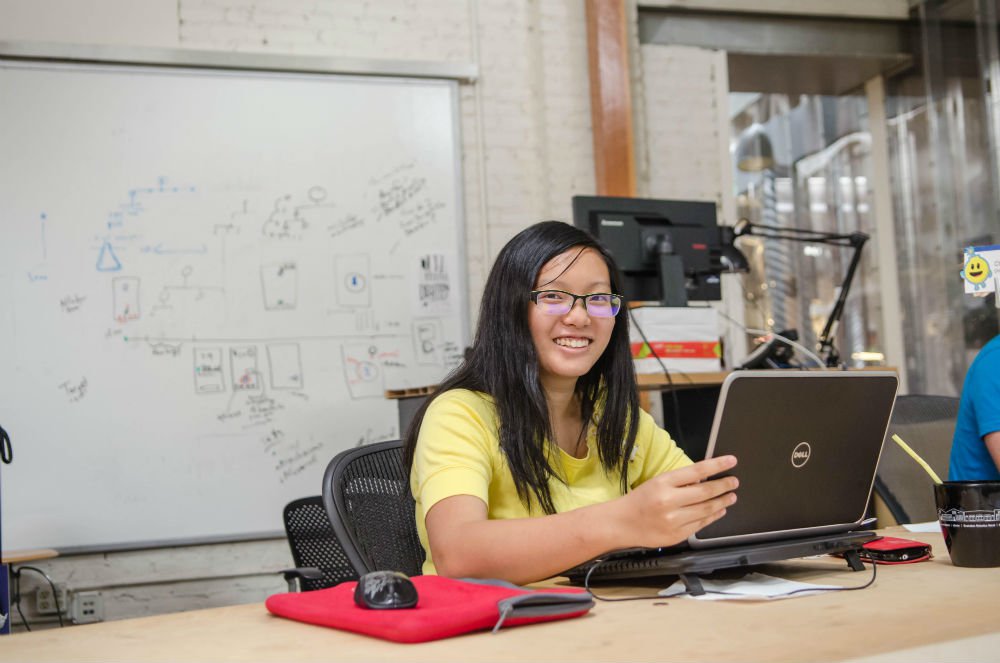 Caltech sophomore Chen Chang working at IdeaLab, a local tech incubator.