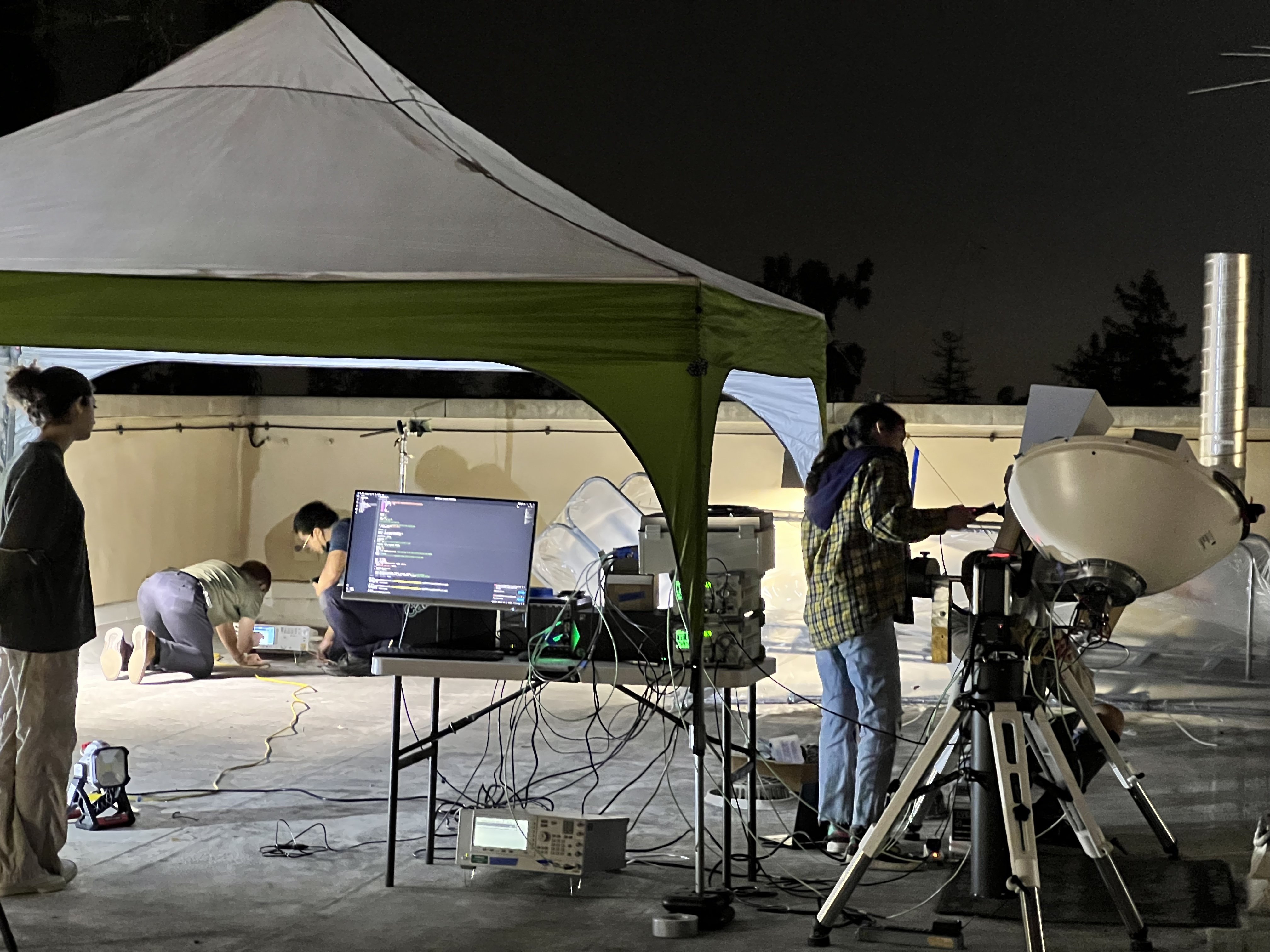 MAPLE also includes a small window through which the array can beam the energy. This transmitted energy was detected by a receiver on the roof of the Gordon and Betty Moore Laboratory of Engineering on Caltech's campus in Pasadena on May 22. The received signal appeared at the expected time and frequency, and had the right frequency shift as predicted based on its travel from orbit.