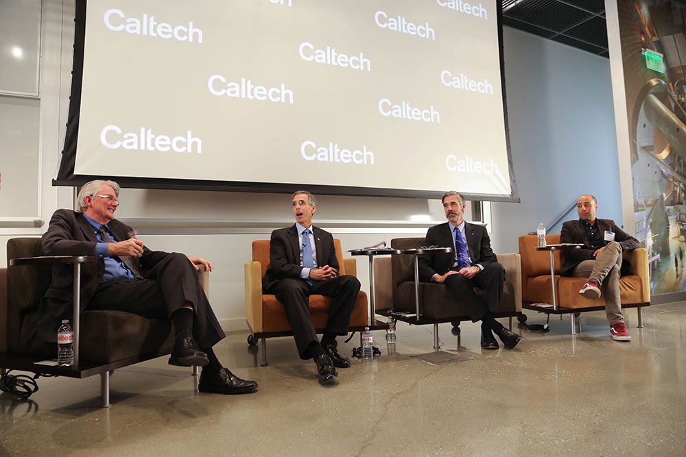 The forum was held at Caltech's Cahill Center for Astronomy and Astrophysics; in addition to Boeing's Tracy, the panel included Scott Fouse, vice president of the Advance Technology Center at Lockheed Martin; Erik Antonsson, Northrop Grumman's corporate director of technology; and Starburst Accelerator cofounder Vandad Espahbodi.