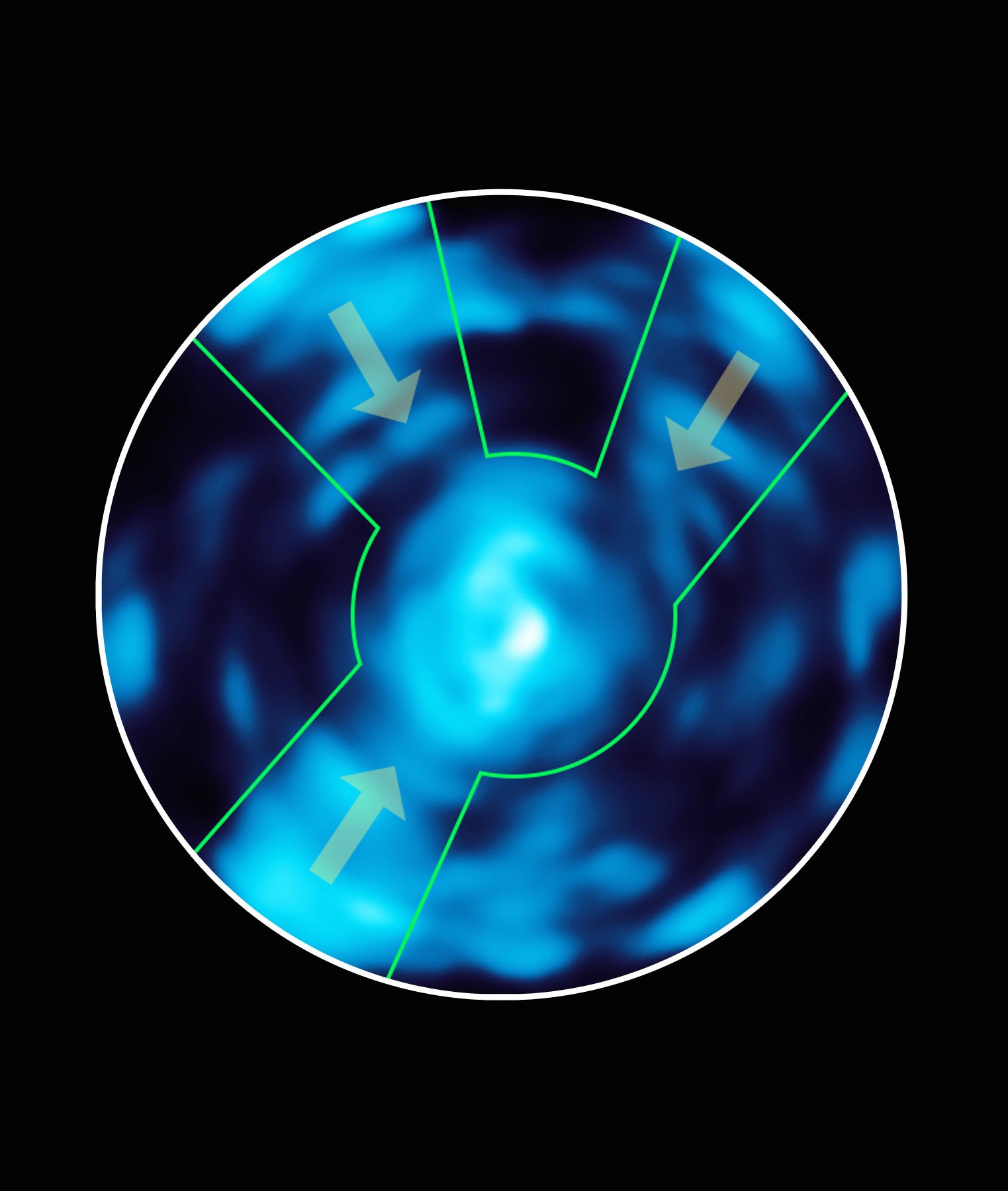 Observation of quasar (QSO 1549+19) taken with Caltech's Cosmic Web Imager. Blue shows hydrogen gas surrounding and inflowing to quasar.