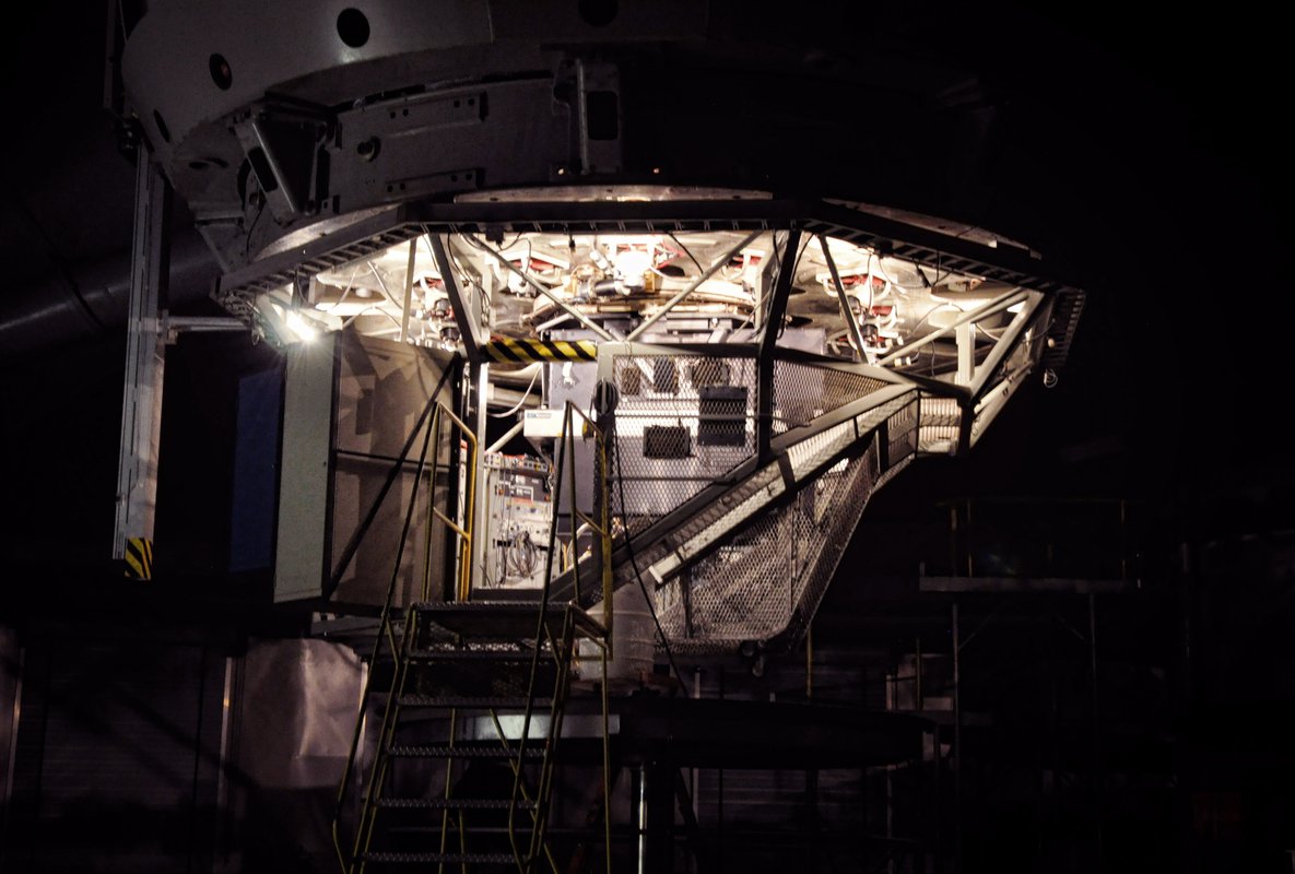 The Cosmic Web Imager installed in the Cassegrain cage of the Hale 200 inch telescope at Palomar Observatory.