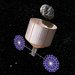 Illustration of an asteroid retrieval spacecraft in the process of capturing a 7-meter, 500-ton asteroid. KISS led an asteroid retrieval mission study in 2011–12 to investigate the feasibility of robotically capturing and returning an entire near-Earth asteroid to the vicinity of the Earth/Moon system for scientific investigation.