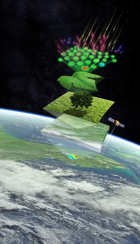 An illustration of the newly developed capacity to monitor chlorophyll fluorescence from terrestrial vegetation by satellite. In 2012, KISS led a workshop to improve scientists' ability to pinpoint locations, times, and methods for the exchange of carbon dioxide between the earth and the atmosphere, which will further our understanding of climate change.