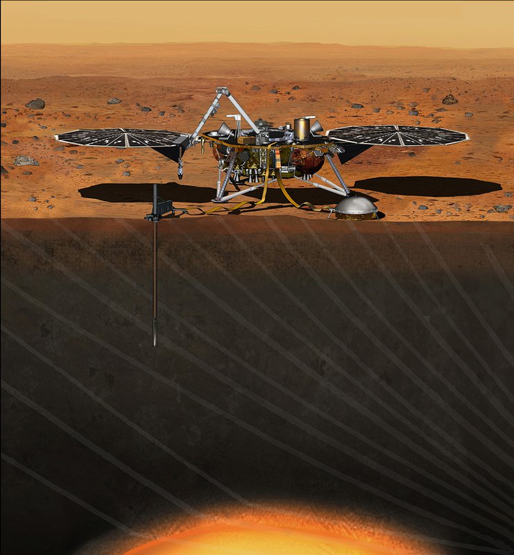 An artistic concept of the NASA Mars lander known as InSight (Interior Exploration Using Seismic Investigations, Geodesy and Heat Transport). This mission is scheduled to launch in March 2016, and will investigate processes that formed and shaped Mars, ultimately helping scientists better understand the evolution of our inner solar system's rocky planets.