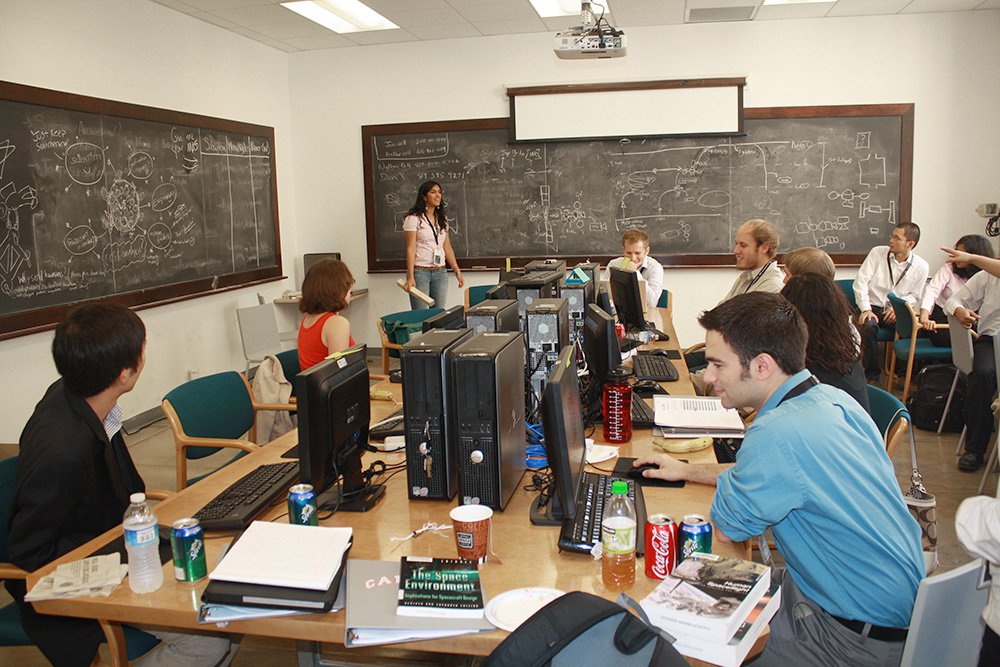 Participants in the 2011 Caltech Space Challenge work together to design a manned mission to a Near-Earth Object (NEO). The Caltech Space Challenge brings students from around the globe to the Caltech campus and challenges them to produce a viable design for a specific space mission. Learn about the 2013 and 2015 Challenges.