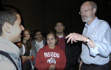 Local students at Pasadena High School had a rare opportunity to speak with Caltech chemist and Nobel laureate Robert Grubbs as part of the "Lunch with a Laureate" program, which is sponsored by the USA Science and Engineering Festival, one of the largest national science festivals for youth. Grubbs engaged the students in an informal conversation, including a question and answer period about his research and scientific discoveries. It was an opportunity for the students to learn firsthand about the trials and tribulations of conducting transformational research, what it's like to be a Nobel laureate, and what makes a Nobel laureate tick.