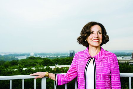 Straight Line to the Capitol: France Córdova at her apartment in Washington, D.C., overlooking Arlington National Cemetery and the National Mall.