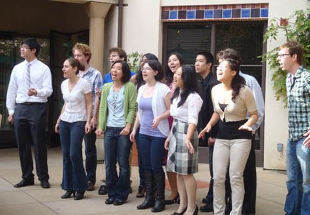 In the afternoon, a panel of faculty presented information on the Freshman Core Curriculum and the staff of the Student Affairs office led special sessions on financial aid, study abroad, and career development. The new students later joined their families for refreshments in the Avery Courtyard and a peformance by Caltech's co-ed a capella singing group, Fluid Dynamics. The program ended with tours of the campus.