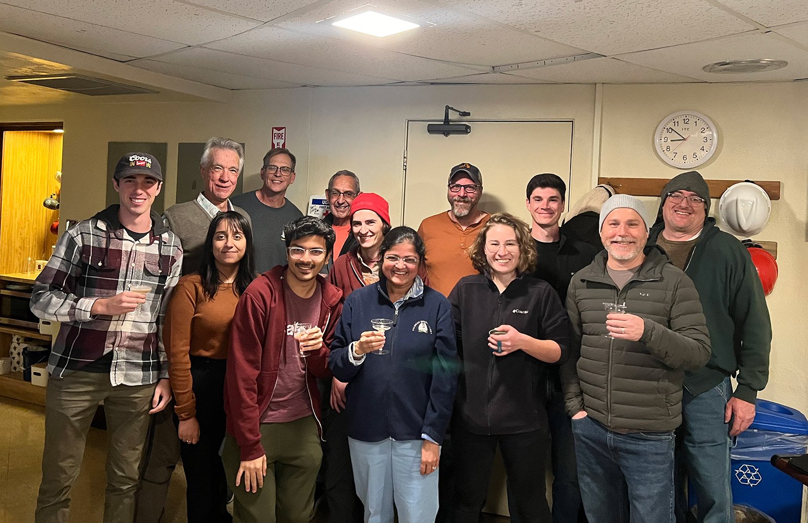 Members of the Caltech-NGPS team are pictured here with the new instrument at Caltech, before it was shipped to Palomar Observatory. Back row, from left to right: Hector Rodriguez, Chaz Shapiro (who works for JPL), Matt Matuszewski, Roger Smith, James Brugger, David Hale, Christoffer Fremling, Rob Bertz, and Dan Reiley. Front row, from left to right: Lin Yan, Lauren Fahey, and Rich Dekany.