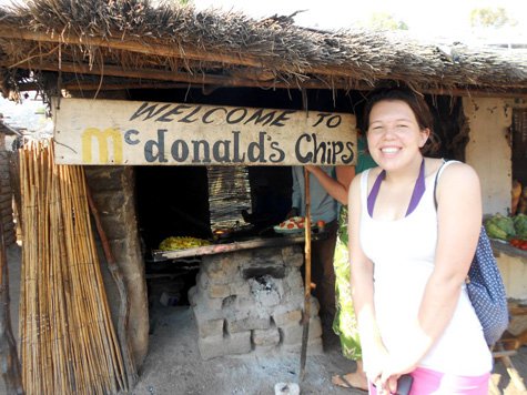 Senior Katie Brennan visits a chip stand on Lake Malawi during a volunteer trip to Africa.