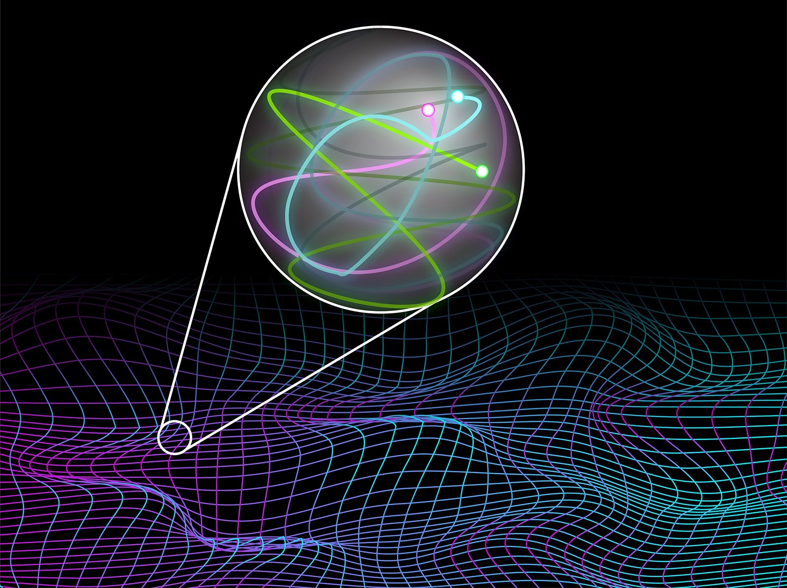 Researchers have discovered that complex random behaviors naturally emerge from even the simplest, chaotic dynamics in a quantum simulator. This illustration zooms into one such complex set of states within an apparently smooth quantum system.