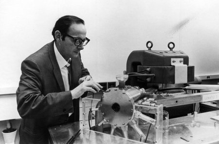 Gerald Wasserburg making adjustments to the Lunatic I mass spectrometer, circa 1969