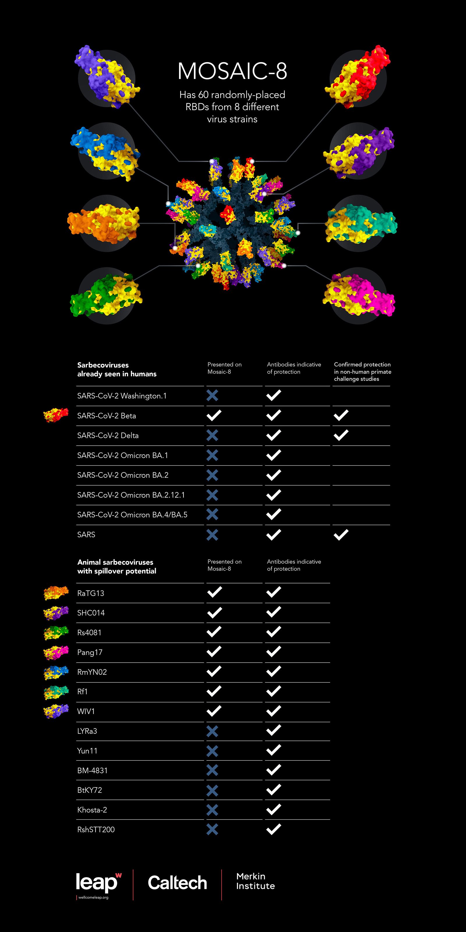 "Animals vaccinated with the mosaic-8 nanoparticles elicited antibodies that recognized virtually every SARS-like betacoronavirus strain we evaluated," says Caltech postdoctoral scholar Alexander Cohen (PhD '21), co-first author on the new study. "Some of these viruses could be related to the strain that causes the next SARS-like betacoronavirus outbreak, so what we really want would be something that targets this entre group of viruses. We believe we have that."
