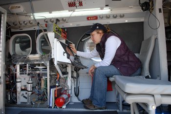 Every morning in May, the Caltech team gathers at Ontario International Airport, checking their equipment for the day's four-hour flight. Typically carrying up to 20 passengers when it operates as a commuter plane, the twin-engine turboprop is so stuffed with gizmos and computers that there's only room for one researcher—usually a grad student—who monitors all the instruments, fixing them if needed.