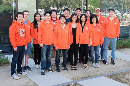 Caltech Science Olympiad Team Back row: Nicholas Trank, Tiffany Zhang, Stephanie Gu, Kevin Kha, Tony Zhang, Angela Gong, Mike Qian Front row: Alex Chao, Phillip Liu, Tyler Okamoto, Julia Yang, Grace Chen, Kristie Yu, Justin Leong