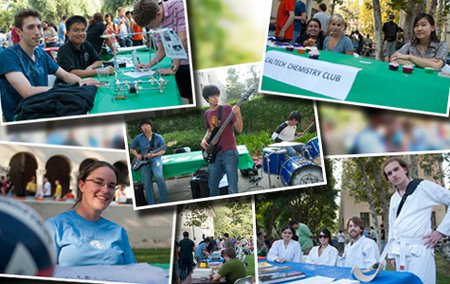 Students were clearly enjoying themselves Wednesday night as they mingled and visited booths for dozens of on-campus clubs and organizations. In addition to more traditional groups such as the Chess Club, the Hiking Society, and the Women's Soccer Club, some unusual clubs were also represented: The Longboarding, High Fiving, and V-Neck Club was there to recruit members, the Meat Club reached out to fellow meat connoisseurs, and the Dance Dance Revolution (DDR) Club drew potential members into its tent to watch and play the game themselves. Attendees were also invited by the Caltech Electric Vehicle Club to check out a Nissan LEAF.