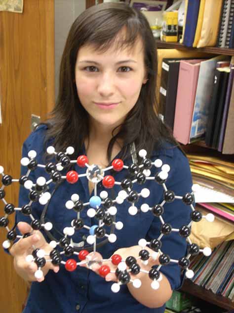At LSU last summer, Jordan holds the model of a molecule developed in the Maverick lab.