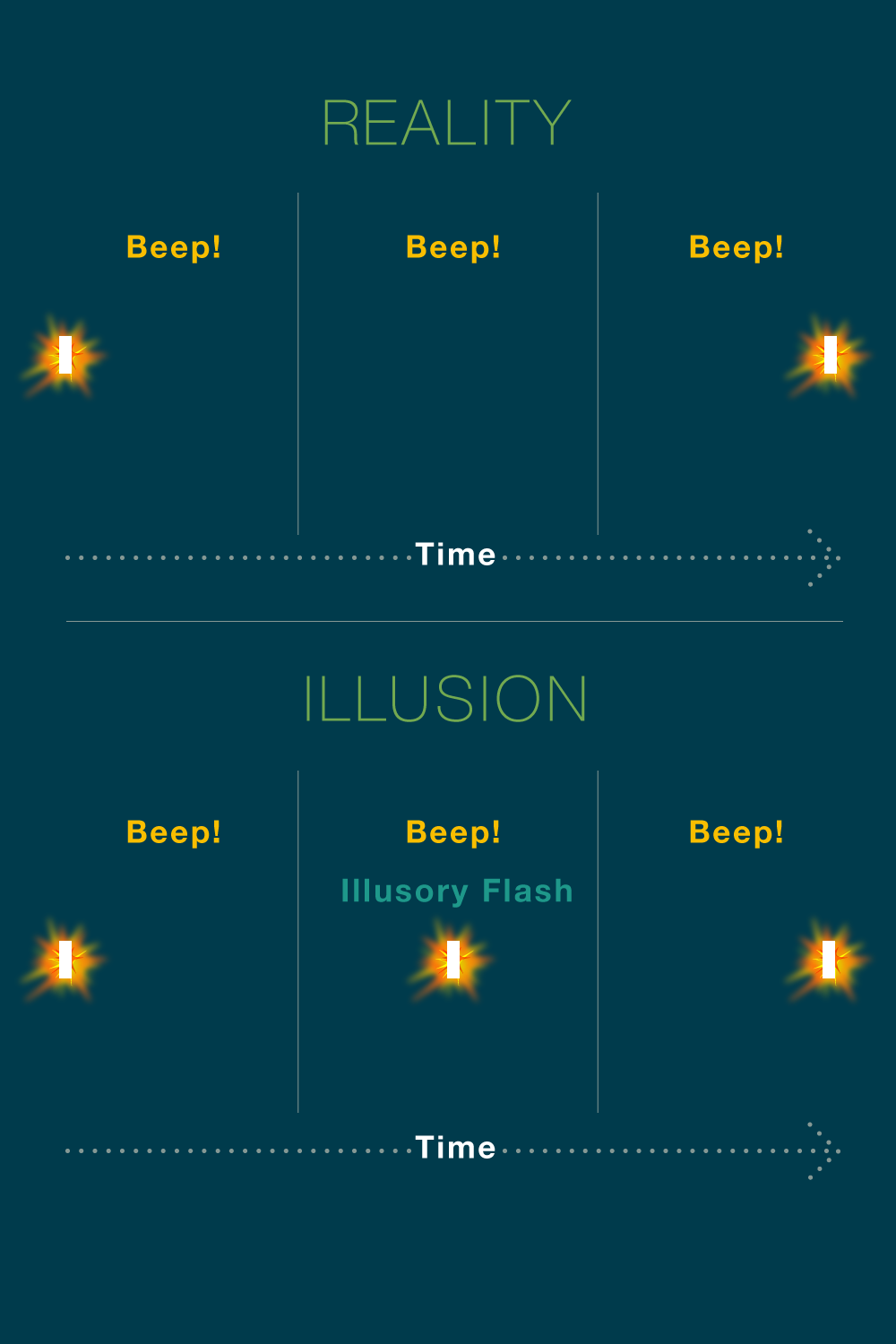 By showing that a sound can excite a visual illusion, the researchers have uncovered new clues as to how the brain combines the senses over space and time to generate an integrated sense of perception.