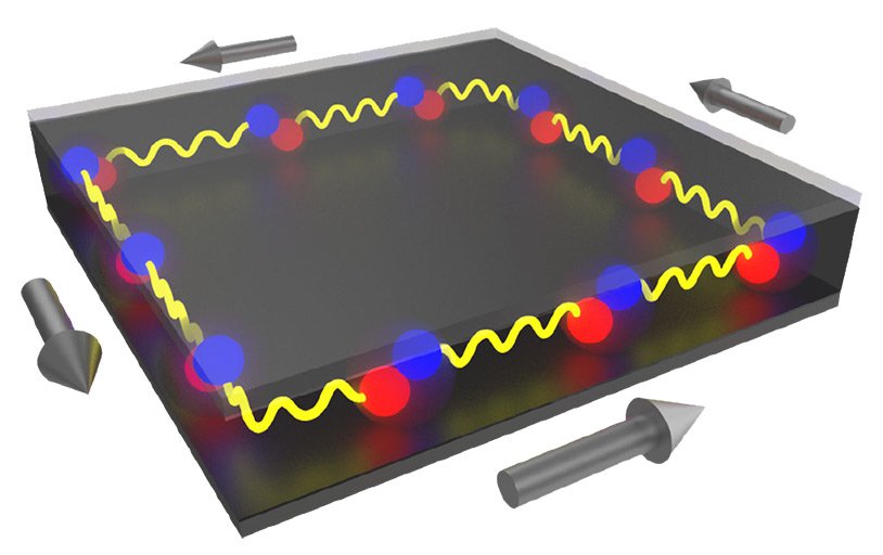 During a workshop at the National Science Foundation (NSF)-sponsored Institute for Quantum Information (now the Institute for Quantum Information and Matter) in 2010, Refael and two colleagues came up with the idea for the topolariton, a type of polariton with the ability to flow in one direction along the edges of semiconducting quantum wells embedded in optical cavities. The quantum well and the cavity confine electrons and photons to motion within a single plane. "We suggested that you could take a simple semiconductor and a regular quantum well, and give rise to a special excitation, which is a hybrid of a photon and an electron-hole pair," that is, of a polariton. "Shining light at the frequency can kick an electron out of the balance and initiate a polariton that travels exclusively on the edge of the system. The light–matter interaction, in this case, produces so-called topological quantum states that are not there in each of the components."
