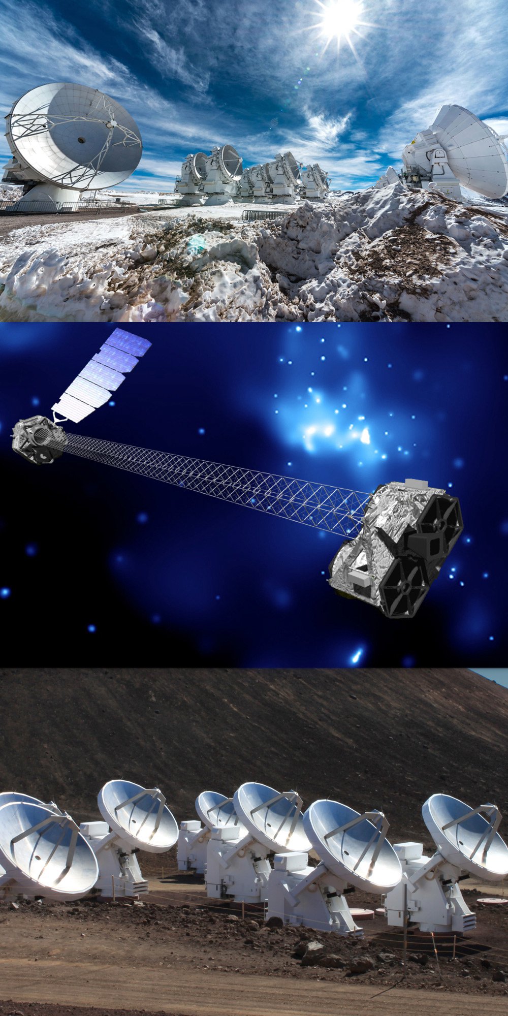 A collage of observatories used in the Caltech studies of Cow: ALMA, NuSTAR, and the Submillimeter Array.