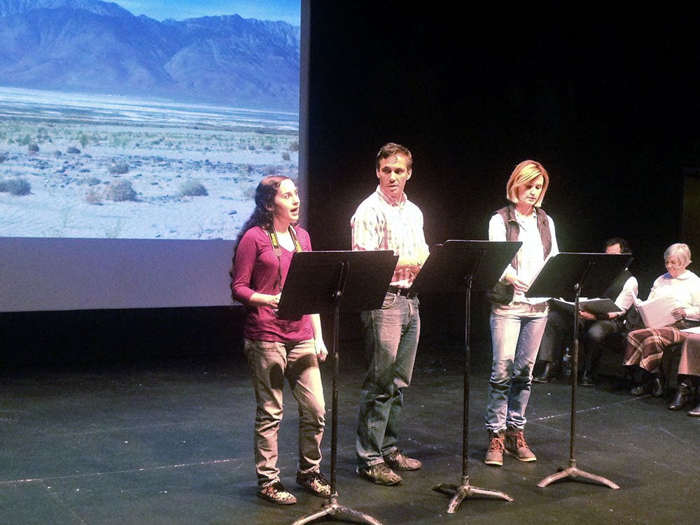 Performing a staged reading of The Chisera on Earth Day in April are (from left): Lydia Kivrak, Caltech undergraduate astrophysics student; Robert Vestal, an actor with the Native Voices Artists Ensemble at the Autry; and Carrie Ancker, artistic associate at Theater Arts at Caltech.