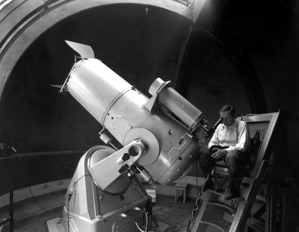 Fritz Zwicky at the 18-inch Schmidt telescope at Palomar Observatory in the 1930s.